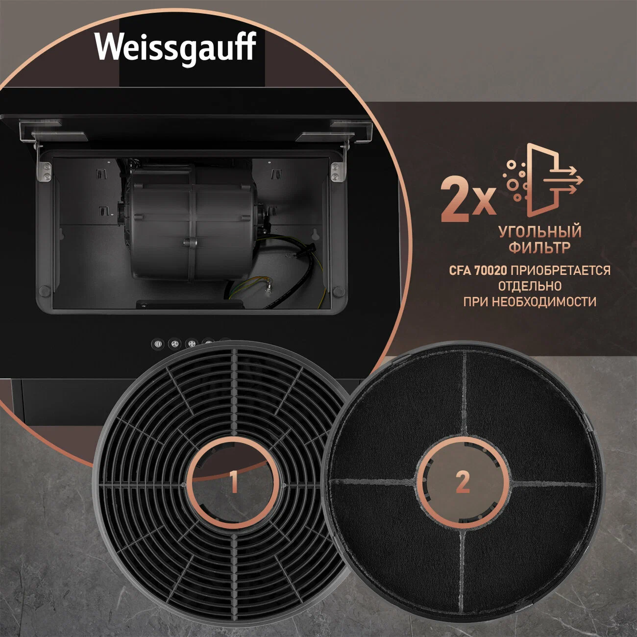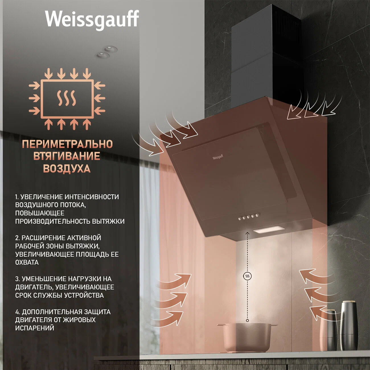 Эффективная работа в помещении площадью до 27 м2 - это гарантия того, что после установки вытяжки Weissgauff, обновление воздуха будет соответствовать всем требуемым нормам, сохраняя ваше здоровье на долгие годы!
