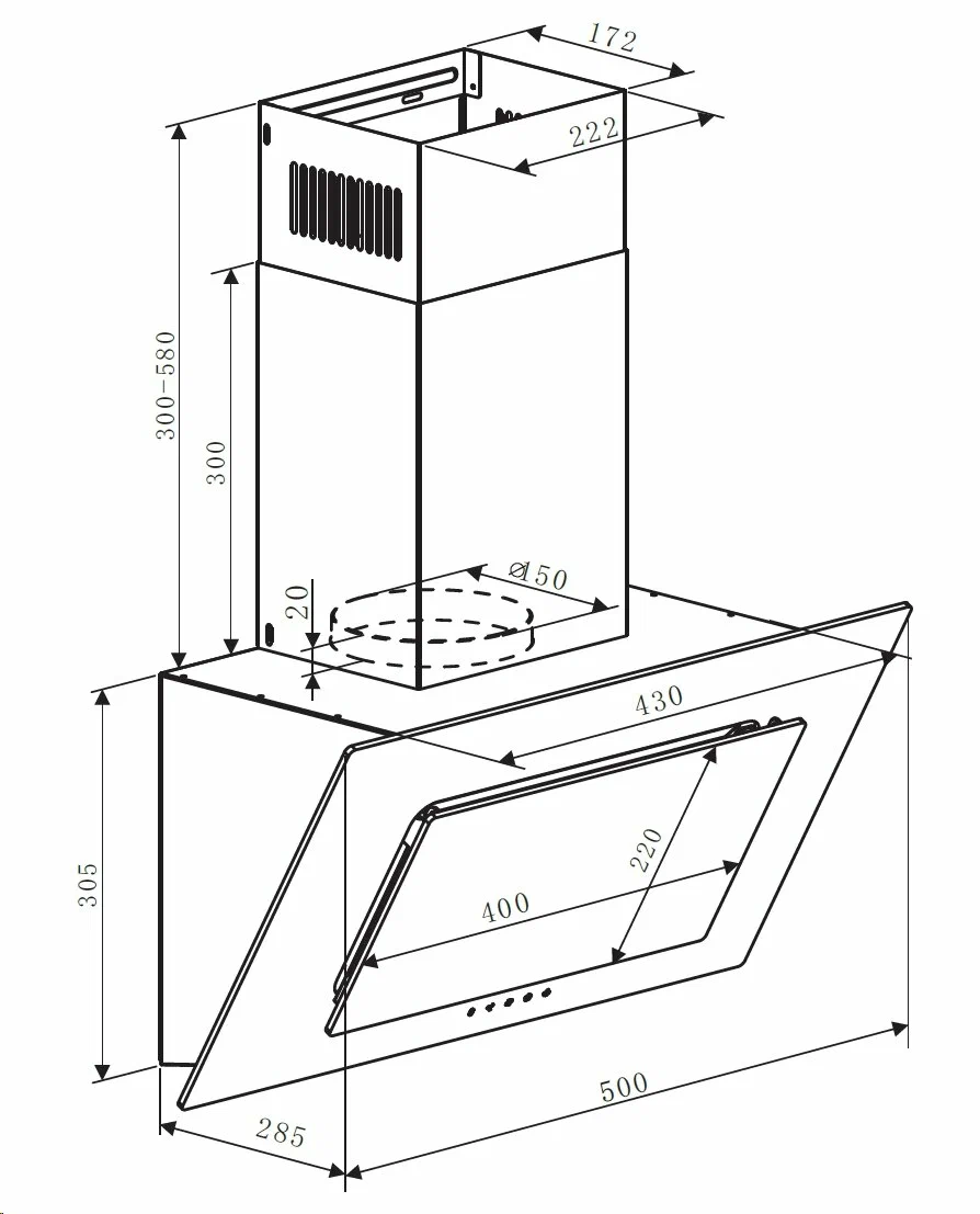 Надежный кнопочный блок управления позволит вам с легкостью включить или выключить вытяжку, выбрать необходимую скорость и управлять встроенным освещением